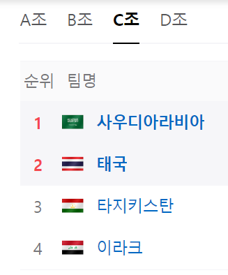 - C조: 사우디아라비아, 태국, 타지키스탄, 이라크