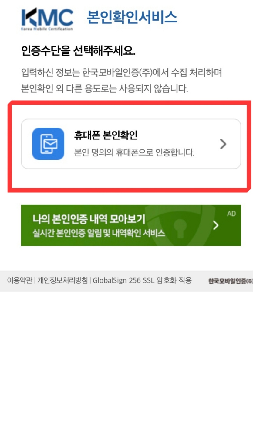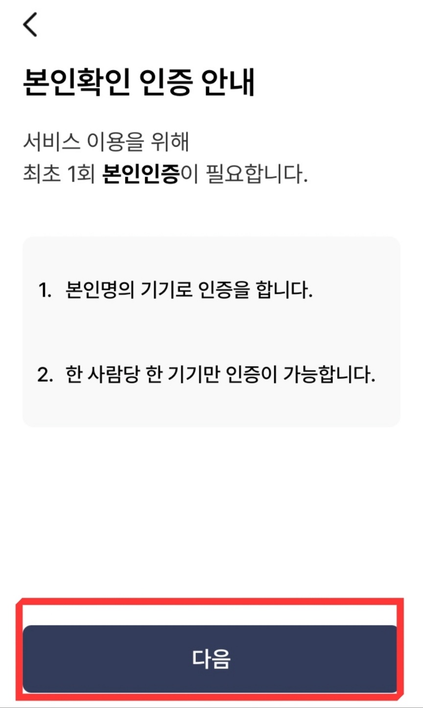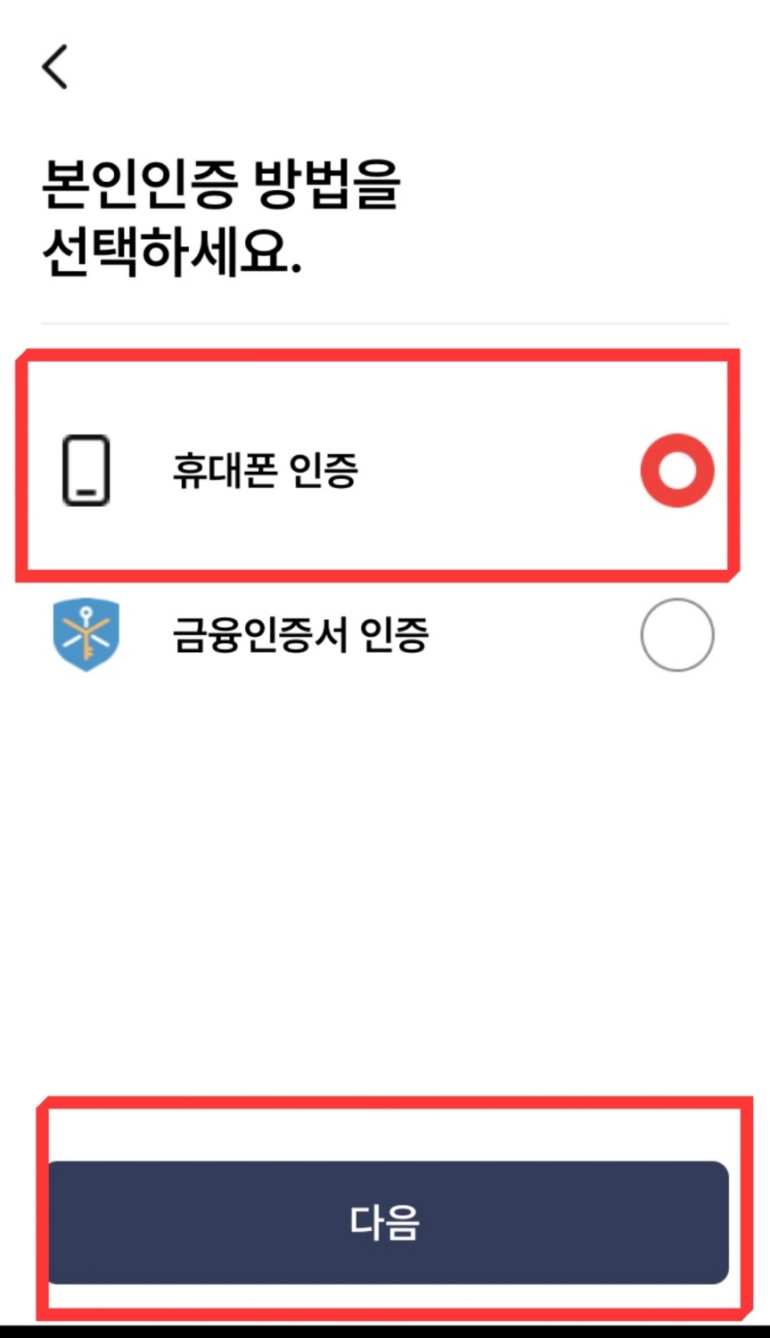 ② 설치 완료가 되었다면 본인인증 수단을 선택하여 인증 하기