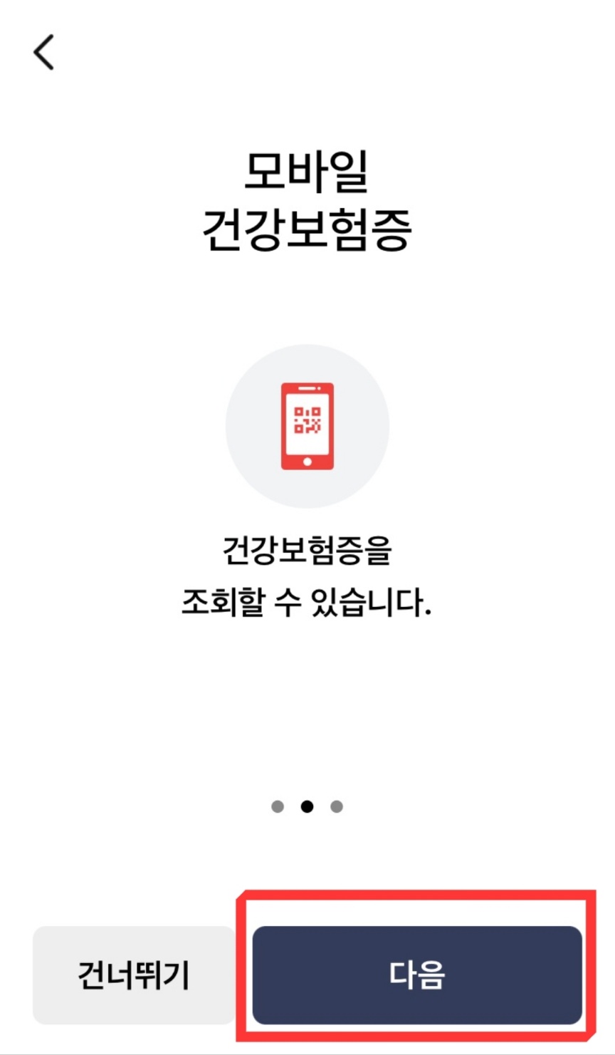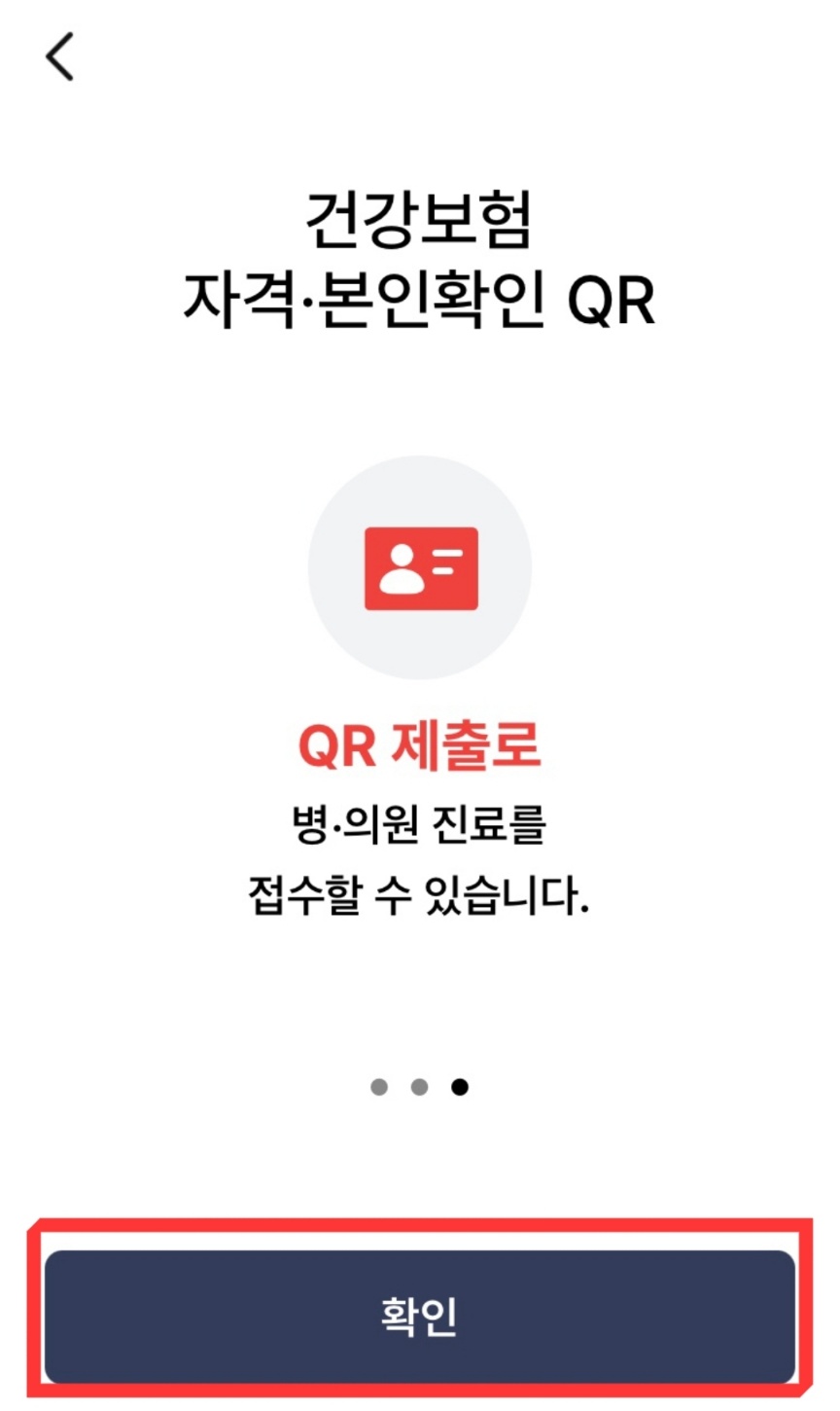 ④ 모바일 건강보험증 조회 또는 건강보험 자격 본인확인 QR코드를 켜서 병원 접수처에 보여주기