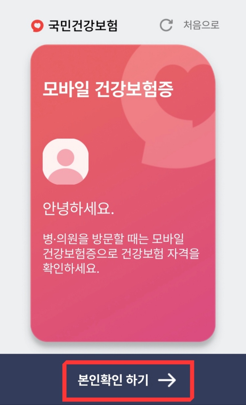 모바일 건강보험증은 본인확인 인증을 받아 발급받을 수 있습니다. 병의원을 방문할 때는 모바일 건강보험증으로 진료를 접수하세요.