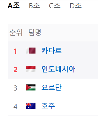 - A조: 카타르, 인도네이사, 요르단, 호주