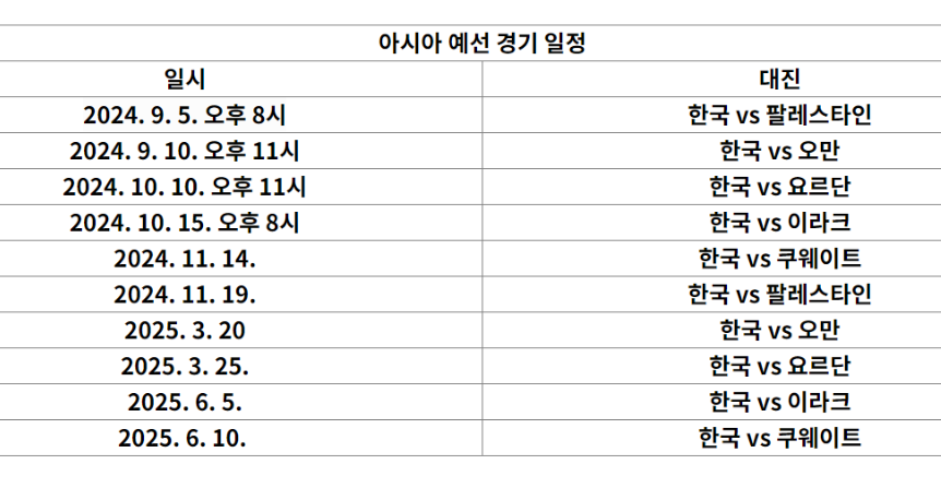 2026 북중미 월드컵 한국 예선전 경기 일정 안내입니다.